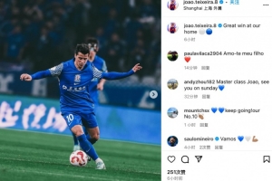 赛后特谢拉更新社媒,晒出了自己的比赛照,并配文写道:“在主场我们收获了一场伟大的胜利!”队友米内罗也现身评论区与他互动,他用葡语评论道:“Vamos(加油)”。